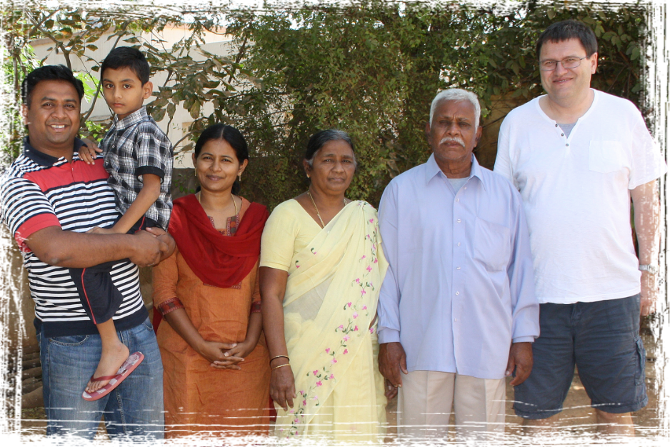 Von links: die Heimleiter Joshua und Blessy mit Sohn Nicky, Joshuas Eltern und Projektleiter Jakob Schöchli